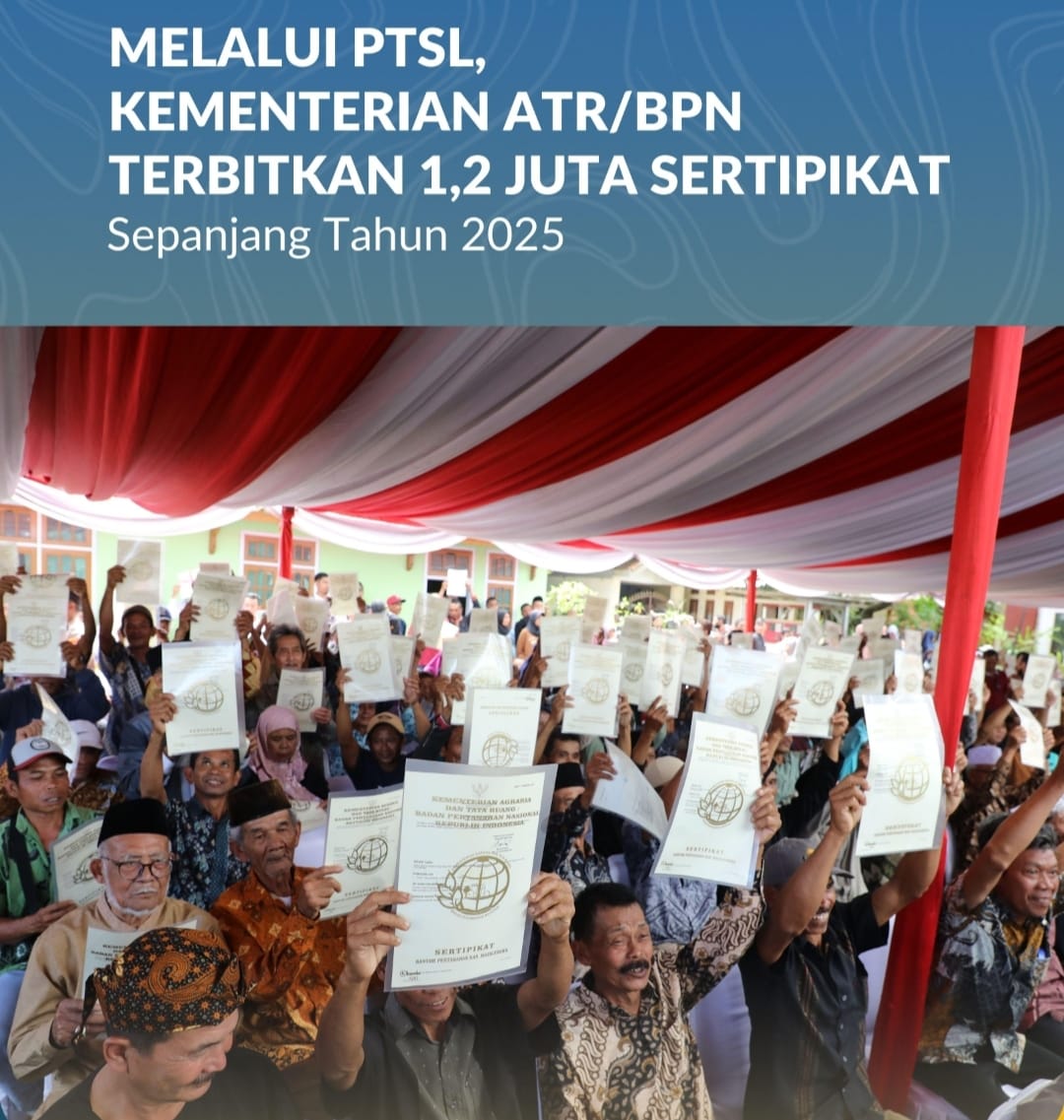 Jakarta, Jurnal Minang. Kementerian Agraria dan Tata Ruang/Badan Pertanahan Nasional (ATR/BPN) mencatat capaian signifikan sepanjang tahun 2025 melalui pelaksanaan program Pendaftaran Tanah Sistematis Lengkap (PTSL), di mana sebanyak 1,2 juta sertipikat tanah berhasil diterbitkan sebagai bagian dari upaya percepatan pendaftaran tanah nasional. Capaian tersebut disampaikan Direktur Jenderal Penetapan Hak dan Pendaftaran Tanah (PHPT), Asnaedi, dalam Rapat Pimpinan (Rapim) yang digelar pada Rabu (14/01/2026) di Kementerian ATR/BPN, Jakarta.