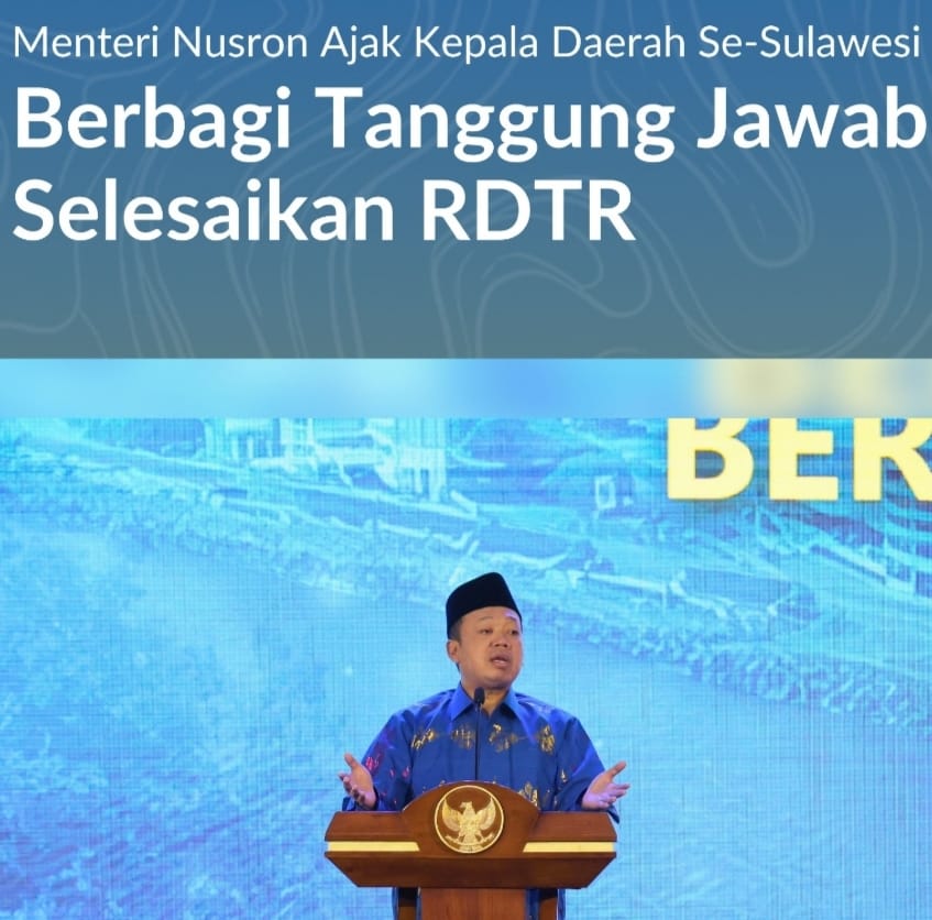 Palu, Jurnal Minang. Penyusunan Rencana Detail Tata Ruang (RDTR) menjadi kunci strategis dalam mewujudkan pembangunan yang terarah dan berkelanjutan. Saat ini, dari total kebutuhan 2.000 dokumen RDTR secara nasional, baru 695 yang berhasil disusun. Di Pulau Sulawesi, dari target 451 RDTR, masih kekurangan 361 dokumen. Menanggapi hal tersebut, Menteri Agraria dan Tata Ruang/Kepala Badan Pertanahan Nasional (ATR/BPN), Nusron Wahid, menegaskan perlunya pembagian tanggung jawab untuk mempercepat penyusunannya.