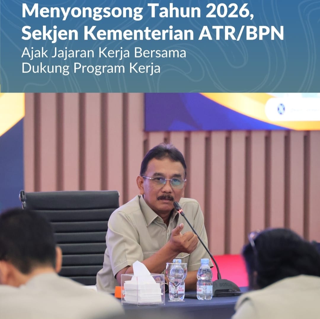 Jakarta, Jurnal Minang. Menyongsong pelaksanaan program kerja tahun 2026, Sekretariat Jenderal (Setjen) Kementerian Agraria dan Tata Ruang/Badan Pertanahan Nasional (ATR/BPN) menggelar kegiatan Pengarahan Sekretaris Jenderal (Sekjen) bagi Pejabat Struktural dan Fungsional di lingkungan Setjen. Dalam kesempatan tersebut, Sekjen Kementerian ATR/BPN, Dalu Agung Darmawan, mengajak seluruh jajaran untuk memperkuat kerja sama lintas biro demi mendukung pelaksanaan program kementerian secara optimal.