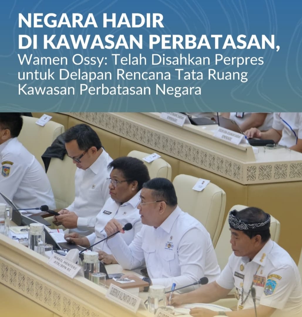 Jakarta, Jurnal Minang. Sebagai upaya memperkuat kedaulatan negara, penataan dan pengelolaan Kawasan Perbatasan Negara (KPN) menjadi aspek yang sangat penting, mulai dari kejelasan batas wilayah hingga pengaturan rencana tata ruang kawasan. Pemerintah Republik Indonesia telah menetapkan delapan Peraturan Presiden (Perpres) tentang Rencana Tata Ruang (RTR) untuk delapan KPN sebagai bentuk kehadiran negara dalam menjaga wilayah perbatasan secara hukum dan spasial. Keberadaan Perpres RTR tersebut tidak hanya berfungsi sebagai pedoman pembangunan kawasan perbatasan, tetapi juga menjadi penguatan titik-titik strategis pertahanan nasional melalui kepastian hukum tata ruang.