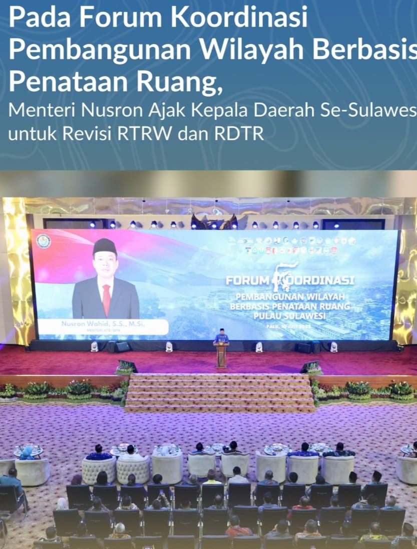 Pada Forum Koordinasi Pembangunan Wilayah Berbasis Penataan Ruang, Menteri Nusron Ajak Kepala Daerah Se-Sulawesi untuk Revisi RTRW dan RDTR