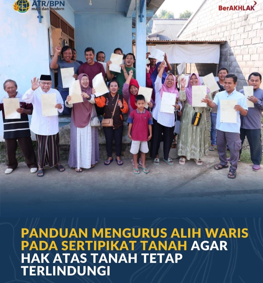 Kabupaten Batang , Jurnal Minang. Sertipikat tanah bukan sekedar dokumen, namun merupakan jejak sejarah, sumber penghidupan, sekaligus jaminan masa depan. Tak jarang, tanah sudah mencatatkan kepemilikan turun-temurun dalam suatu keluarga. Tanah yang sudah diwariskan ke penerus keluarga, perlu diurus secara resmi perubahan hak miliknya dalam sertipikat.