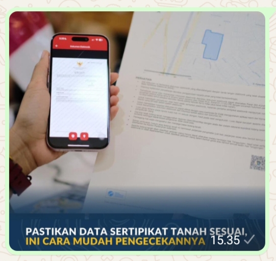 Jakarta, Jurnal Minang. Masyarakat kini bisa memastikan kesesuaian data sertipikat tanah secara lebih mudah tanpa harus datang ke Kantor Pertanahan. Melalui layanan digital yang disediakan Kementerian Agraria dan Tata Ruang/Badan Pertanahan Nasional (ATR/BPN), pengecekan dapat dilakukan hanya melalui smartphone.