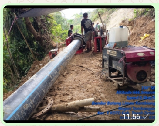 Saat ini para pekerja dibawah arahan dan bimbingan site manager CV.Lantika Karya Perdana Hermansyah sedang basitungkin melaksanakan pekerjaan berupa pembuatan saluran irigasi serta pemasangan pipa HDPE diameter 16 inci dengan panjang 66 meter hingga saat ini pelaksanaan pekerjaan sudah mendekati 70 persen tahap penyelesaian.
