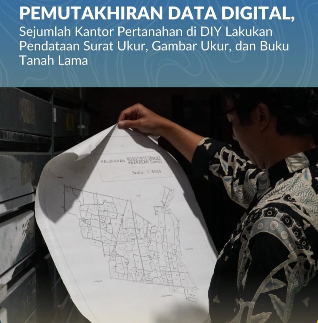 Yogyakarta, Jurnal Minang. Pencatatan tanah sejak awal Indonesia berdiri hingga saat ini mengalami banyak perkembangan. Kementerian Agraria dan Tata Ruang/Badan Pertanahan Nasional (ATR/BPN) juga bertahap bergerak seiring perkembangan dengan pemutakhiran data digital pertanahan sebagai bagian dari transformasi layanan dan penguatan basis data nasional. Langkah tersebut diimplementasikan oleh satuan kerja (Satker) di daerah, termasuk sejumlah Kantor Pertanahan di Provinsi Daerah Istimewa Yogyakarta (DIY), melalui pendataan arsip pertanahan lama untuk menjawab kebutuhan masyarakat akan informasi pertanahan yang lebih akurat.