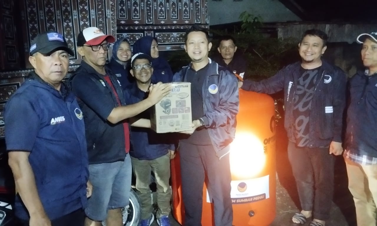 Dalam penyerahan bantuan dari DPW Partai Nasdem Sumatera Barat diserahkan oleh Pengurus DPD Partai Nasdem Sumbar yaitu Erick Hamdani, SE Dt.Ambasa, Marta Suhendra, Mery Susanti, M.Dt.Gamuak, Ike, dan Susan.