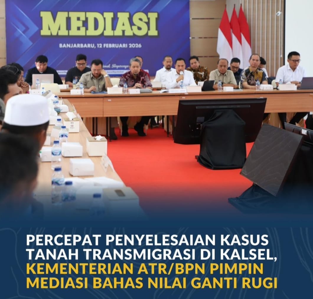 Banjarbaru, Jurnal Minang. Proses penyelesaian kasus pembatalan sertipikat milik masyarakat eks transmigran di Kalimantan Selatan (Kalsel) terus bergulir. Dengan komando dari Menteri Agraria dan Tata Ruang/Kepala Badan Pertanahan Nasional (ATR/BPN), Nusron Wahid, Kementerian ATR/BPN memfasilitasi tahap mediasi sengketa lahan antara warga Desa Bekambit dan Desa Bekambit Asri (dh. Desa Bekambit hulu) dengan PT Sebuku Sejaka Coal (SSC). Pertemuan berlangsung pada Kamis (12/02/2026), di Kantor Wilayah (Kanwil) BPN Provinsi Kalsel, dengan fokus bahasan mengenai kesepakatan nilai ganti rugi antara kedua pihak.