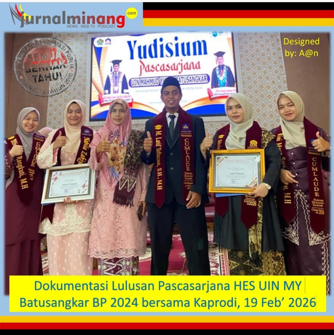 Batusangkar, Jurnal Minang. Program Studi (Prodi) Hukum Ekonomi Syariah (HES) Universitas Islam Negeri Mahmud Yunus Batusangkar (UIN MY Batusangkar) berhasil mencetak 5 (lima) orang mahasiswa BP 2024 lulus dengan predikat Cum Laude setelah menyelesaikan proses perkuliahan pascasarjana mereka tepat waktu dalam masa 3 (tiga) semester (1,5 tahun).