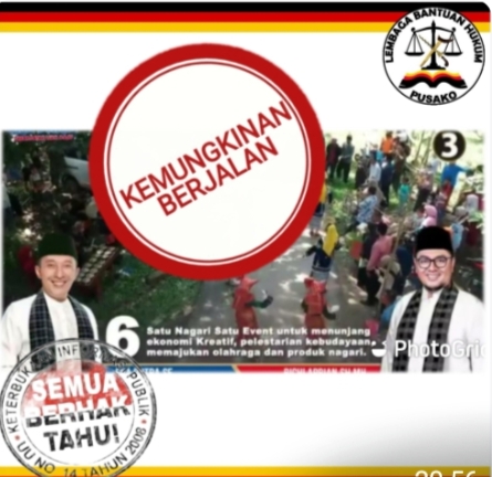 Setelah tim LBH Pusako membahas tentang Progul No. 8 yaitu Membangun 100 Pemancar Jaringan Seluler di Tanah Datar dalam Waktu 5 Tahun, dengan kesimpulan akhir DIPREDIKSI GAGAL, maka kali ini kami berkesempatan membahas Progul No. 6 yaitu: Satu Nagari Satu Event. Akankah bahasan kami berakhir dengan kata “Diprediksi Gagal” juga?