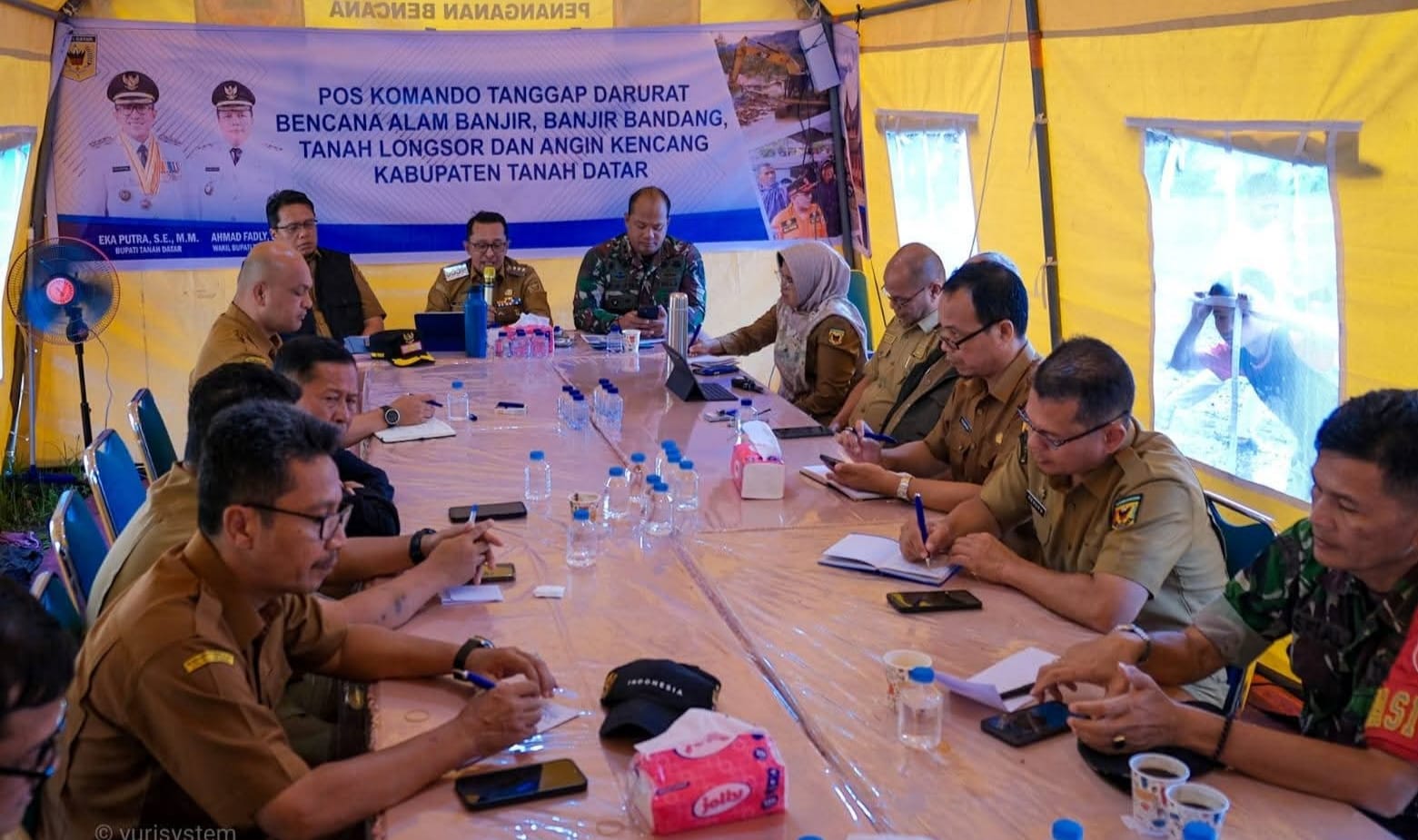 Batu Taba, Jurnal Minang. Bupati Tanah Datar Eka Putra, SE.MM ikuti Rapat Koordinasi (Rakor) percepatan penanggulangan bencana Sumbar yang dipimpin Wakil Gubernur Vasko Ruseimy secara zoom, di posko utama Batu Taba Kecamatan Batipuh Selatan, Senin (15/12/2025).