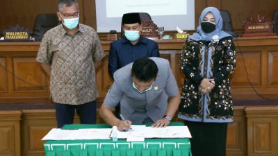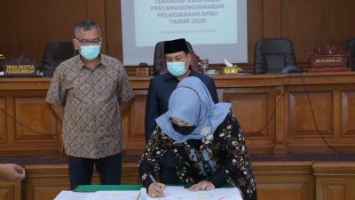 Payakumbuh — Peraturan Daerah (Perda) APBD Kota Payakumbuh Tahun 2020 disahkan dalam Rapat Paripurna Pengambilan Keputusan Terhadap Ranperda Pertanggungjawaban Pelaksanaan APBD Tahun 2020 yang Didahului Penyampaian Laporan Tingkat 1 oleh Wali Kota Riza Falepi bersama DPRD di Ruang Sidang Rapat Paripurna DPRD, Senin (14/6).
