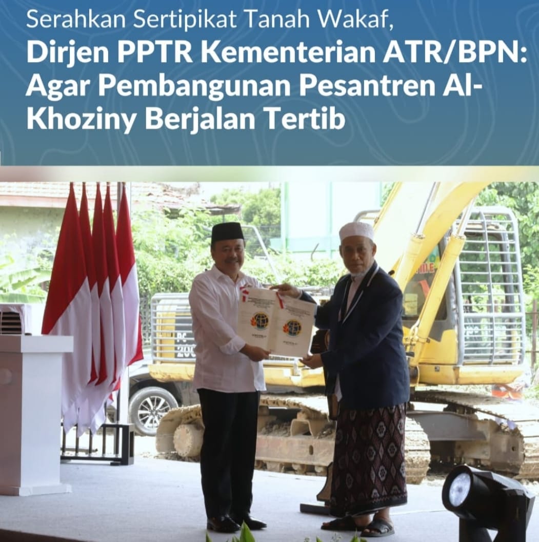 โ€œSertipikat wakaf ini kami serahkan agar proses pembangunan dapat berjalan dengan tertib, aman secara hukum, dan memberi kepastian bagi pesantren ke depan. Semoga pembangunan fasilitas baru ini membawa keberkahan dan manfaat yang lebih besar bagi santri dan masyarakat,โ€ ujar Dirjen PPTR Kementerian ATR/BPN.
