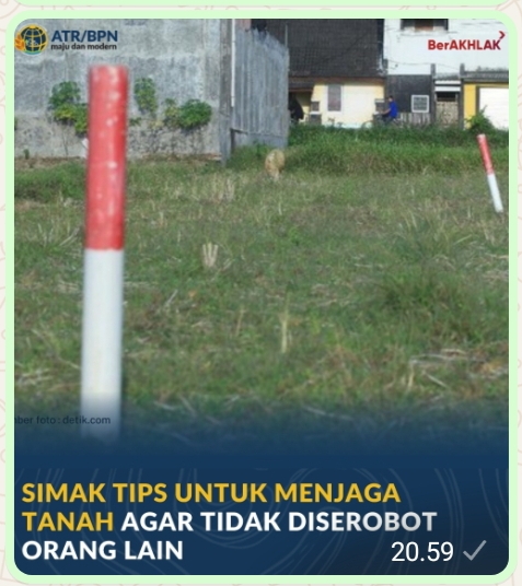 “Biar tanah tidak diserobot orang, yang paling penting adalah memastikan batas tanah jelas dan memiliki sertipikat sebagai bukti hukum yang kuat,” ujar Kepala Biro Hubungan Masyarakat (Humas) dan Protokol Kementerian Agraria dan Tata Ruang/Badan Pertanahan Nasional (ATR/BPN), Shamy Ardian, dalam keterangannya pada Rabu (29/04/2026).