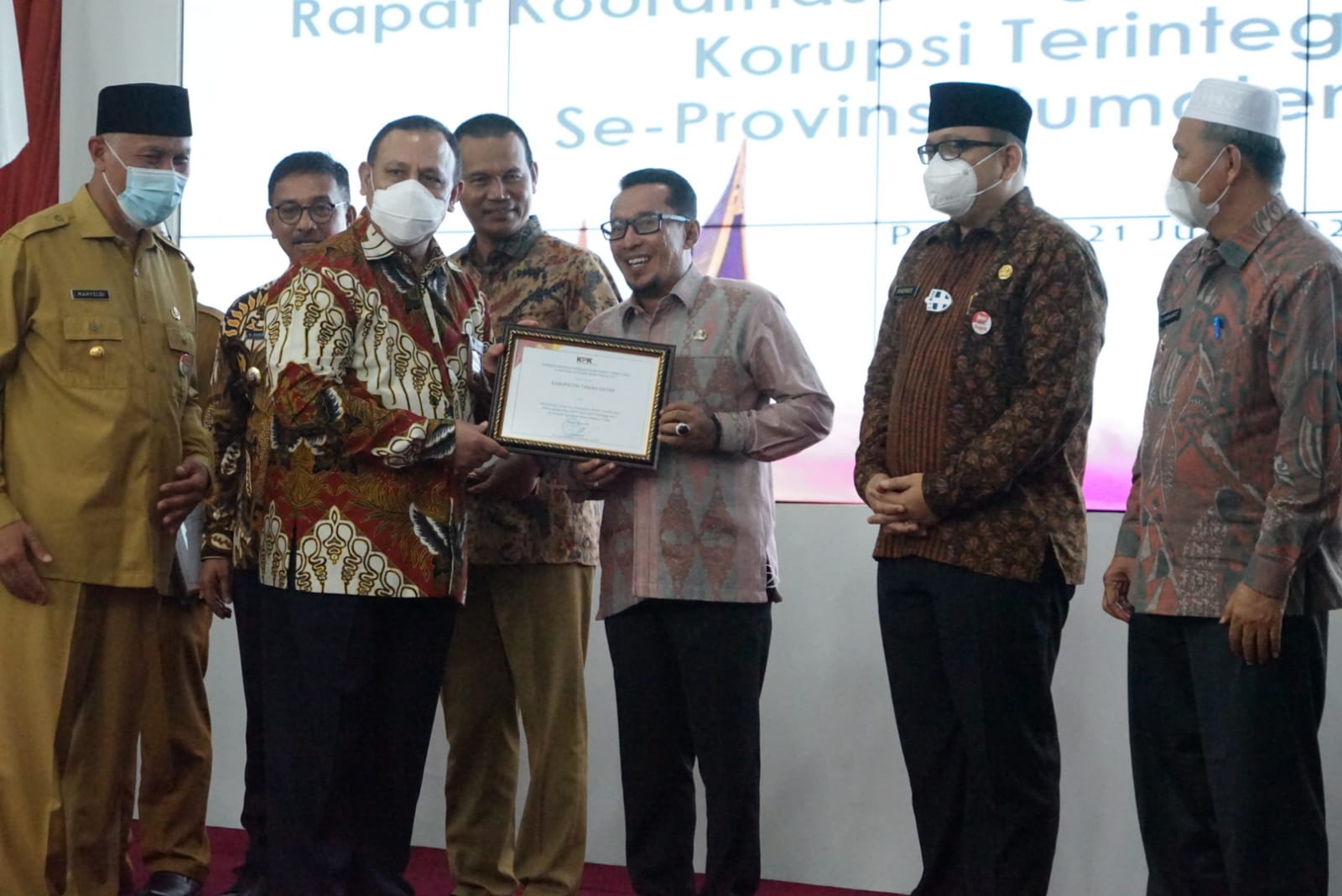 Sementara itu Ketua KPK RI Firli Bahuri mengatakan semenjak KPK berdiri dari tahun 2004 hingga 2021 Sumatera Barat berada diurutan 27 dari 34 provinsi di Indonesia tingkatan terendah dari pemeriksaan KPK, untuk itu Firli beri apresiasi dan juga memberikan apresiasi kepada kabupaten dan kota yang meraih penghargaan program pemberantasan korupsi secara terintegrasi.