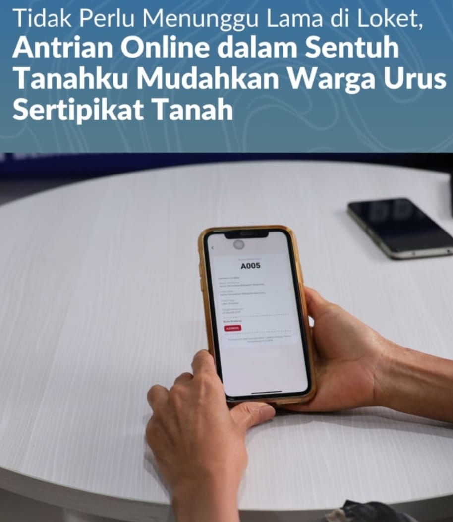 Kab. Karawang , Jurnal Minang. Pemanfaatan fitur Antrian Online dalam aplikasi Sentuh Tanahku terbukti memberikan kemudahan bagi masyarakat dalam mengurus berbagai urusan pertanahan. Kemudahan itu dirasakan langsung oleh Indri, salah satu pemohon di Kantor Pertanahan (Kantah) Kabupaten Karawang, yang tidak lagi harus menunggu lama saat mengantre di loket pelayanan.