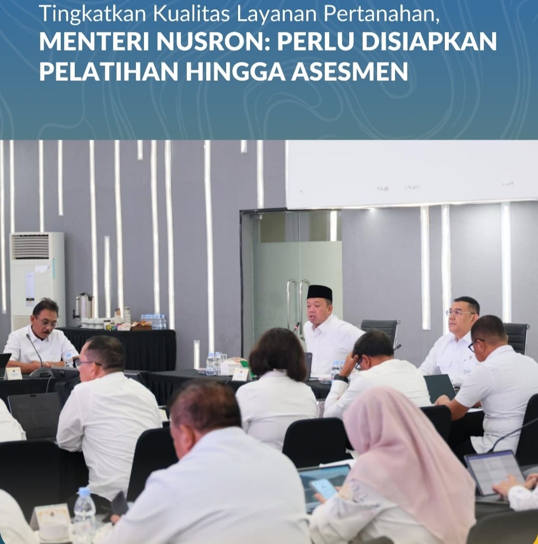 Jakarta, Jurnal Minang. Sebagai upaya dalam meningkatkan kualitas layanan pertanahan, Menteri Agraria dan Tata Ruang/Kepala Badan Pertanahan Nasional (ATR/BPN), Nusron Wahid, menyiapkan pelaksanaan pelatihan sumber daya manusia (SDM) dan asesmen kompetensi secara berkelanjutan. Langkah ini dinilai penting untuk memperkuat profesionalisme aparatur serta mendorong transformasi pelayanan publik di lingkungan Kementerian ATR/BPN.