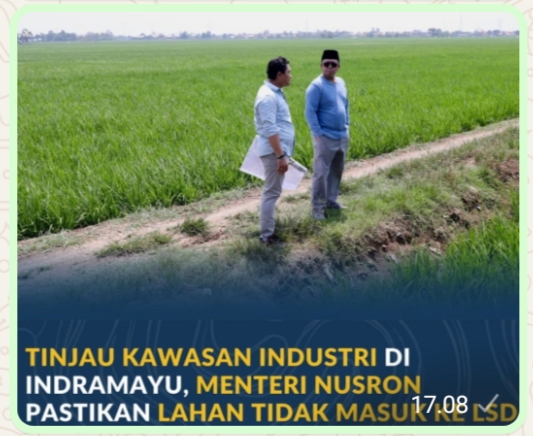 “Kita ingin memastikan apakah lahan tersebut masuk wilayah KP2B (Kawasan Pertanian Pangan Berkelanjutan, red) atau tidak,” ujar Menteri Nusron di Indramayu, Minggu (19/04/2026).