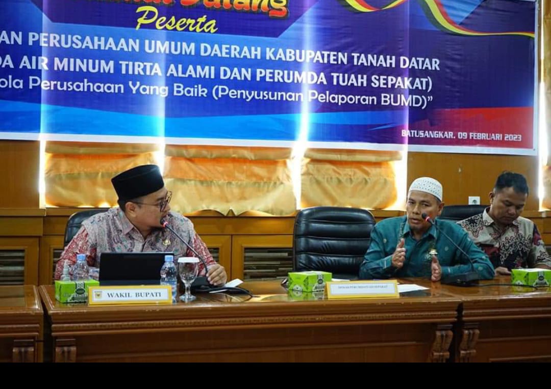 Wakil Bupati Richi Aprian, SH, MH ketika menghadiri acara Pembinaan Perusahaan Umum Daerah Kabupaten Tanah Datar (Perumda Air Minum Tirta Alami dan Perumda Tuah Sepakat) dengan tema “Tata Kelola Perusahaan Yang Baik (Penyusunan Pelaporan BUMD)”, Kamis (9/2/2023) mengatakan Perumda ke depan harus semakin baik terutama dalam upaya melayani hajat hidup orang banyak seperti kebutuhan akan air bersih dari PDAM.