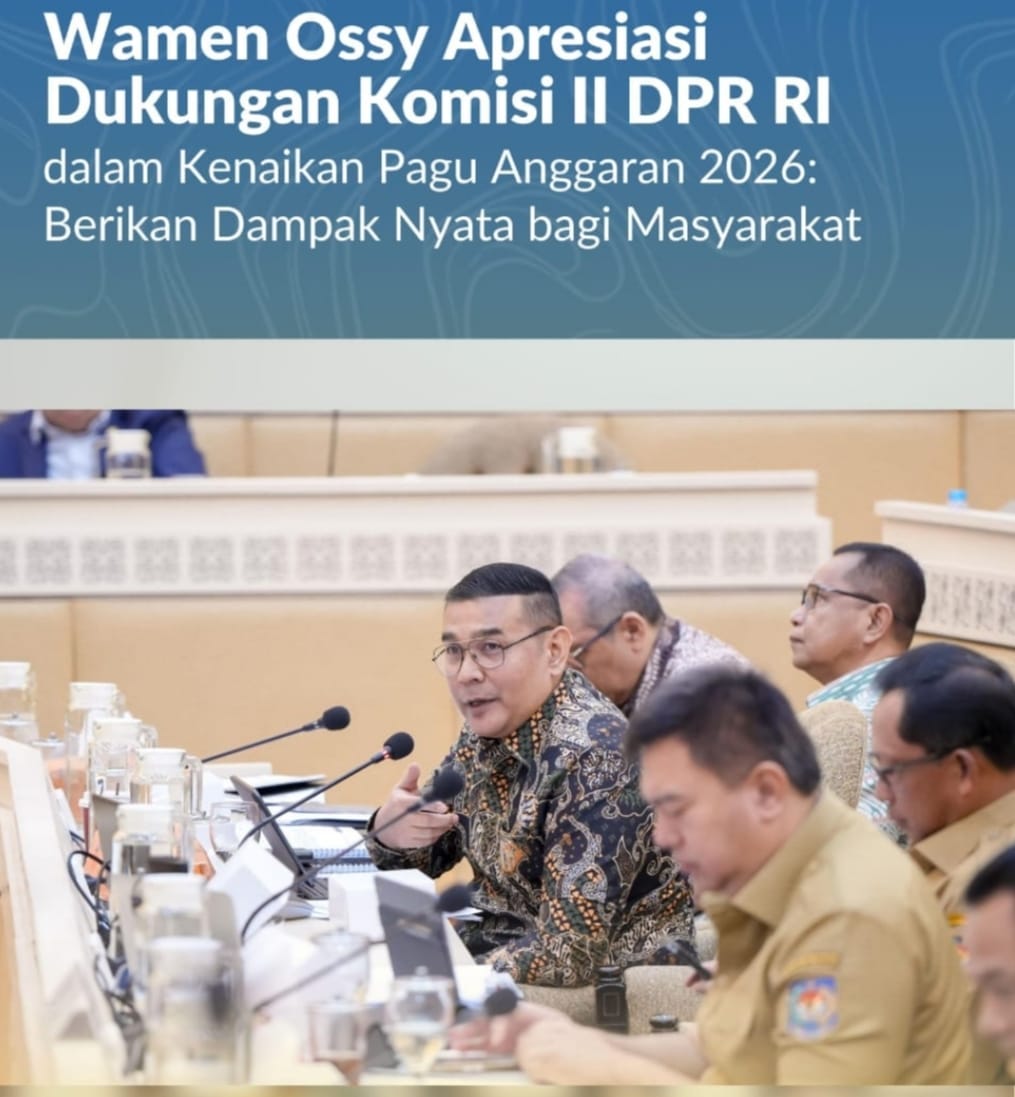 Jakarta, Jurnal Minang. Wakil Menteri Agraria dan Tata Ruang/Wakil Kepala Badan Pertanahan Nasional (Wamen ATR/Waka BPN), Ossy Dermawan, menyampaikan apresiasi atas dukungan Komisi II Dewan Perwakilan Rakyat Republik Indonesia (DPR RI) dalam hal kenaikan pagu anggaran Kementerian ATR/BPN tahun 2026. Apresiasi itu ia sampaikan dalam Rapat Dengar Pendapat (RDP) bersama Komisi II DPR RI, di Gedung Nusantara, Jakarta, Senin (15/09/2025).