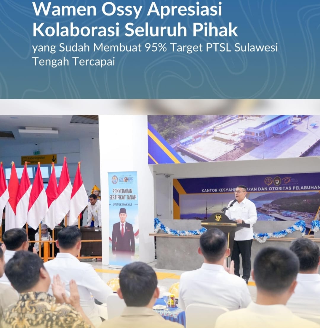 “Program PTSL yang ada di Sulawesi Tengah menunjukkan progres dan kemajuan yang baik. Capaian ini tidak lepas dari kerja keras dan kolaborasi semua pihak dari Kantor Wilayah BPN, Kantor Pertanahan, hingga dukungan Pemda dan masyarakat,” ujar Wamen Ossy.