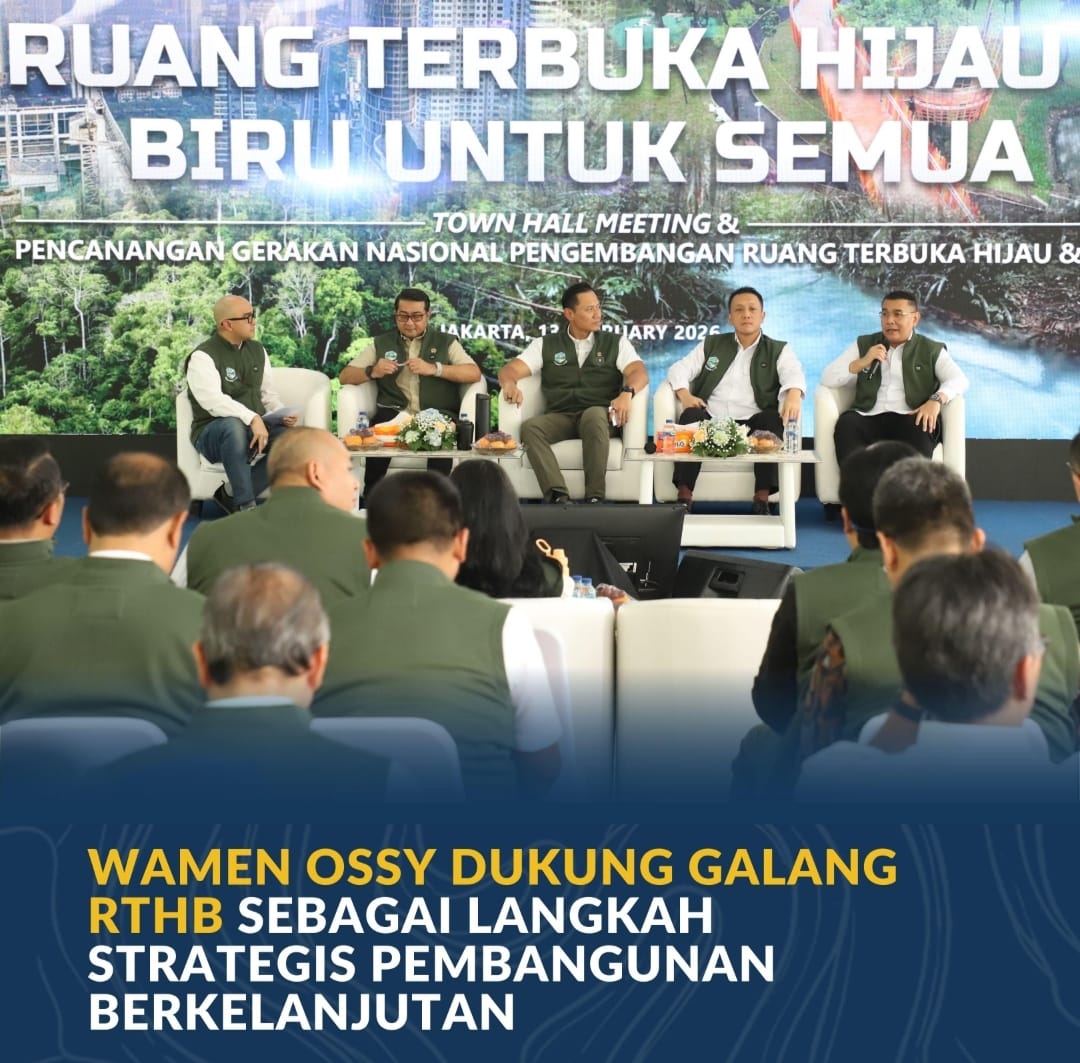 “Tentunya kami menyambut baik inisiatif GALANG RTHB ini karena terus terang ini merupakan satu perubahan mindset yang harus kita lakukan kepada masyarakat. Bagaimana mem-value ruang terbuka hijau dan biru di-incorporate dalam kehidupan sehari-hari,” tutur Wamen Ossy dalam acara Town Hall Meeting dan Pencanangan GALANG RHTB yang berlangsung di Tebet Eco Park, Jakarta, Jumat (13/02/2026).