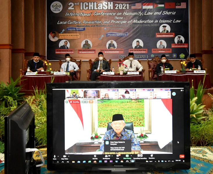 Tanah Datar, Jurnal Minang.Com. News&Web TV. Wakil Presiden RI Prof.Dr.K.H Ma’ruf Amin hadir sebagai Keynote Speaker pada International Conference on Humanity, Law and Sharia II (2nd ICHLaSh) Fakultas Syari’ah Institut Agama Islam Negeri (IAIN) Batusangkar melalui konferensi video pada hari Rabu, 23 Juli 2021.