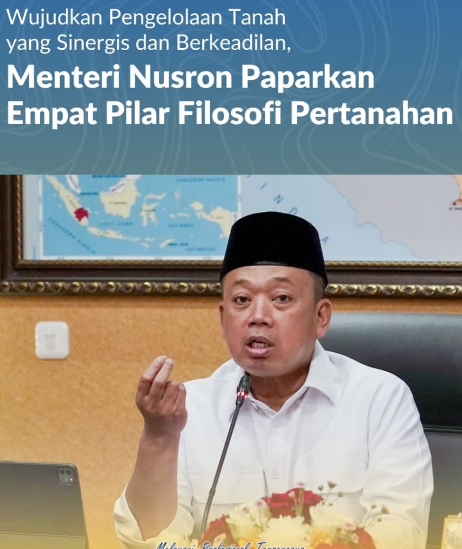 Palembang, Jurnal Minang. Menteri Agraria dan Tata Ruang/Kepala Badan Pertanahan Nasional (ATR/BPN), Nusron Wahid, menyatakan bahwa filosofi dasar pertanahan penting untuk dipahami agar pengelolaan tanah di Indonesia berjalan sinergis dan berkeadilan. Hal ini ia sampaikan pada Kamis (09/10/2025), di hadapan para bupati dan wali kota se-Sumatra Selatan sebagai upaya menyamakan paradigma antara pemerintah pusat dan daerah dalam penanganan isu pertanahan.