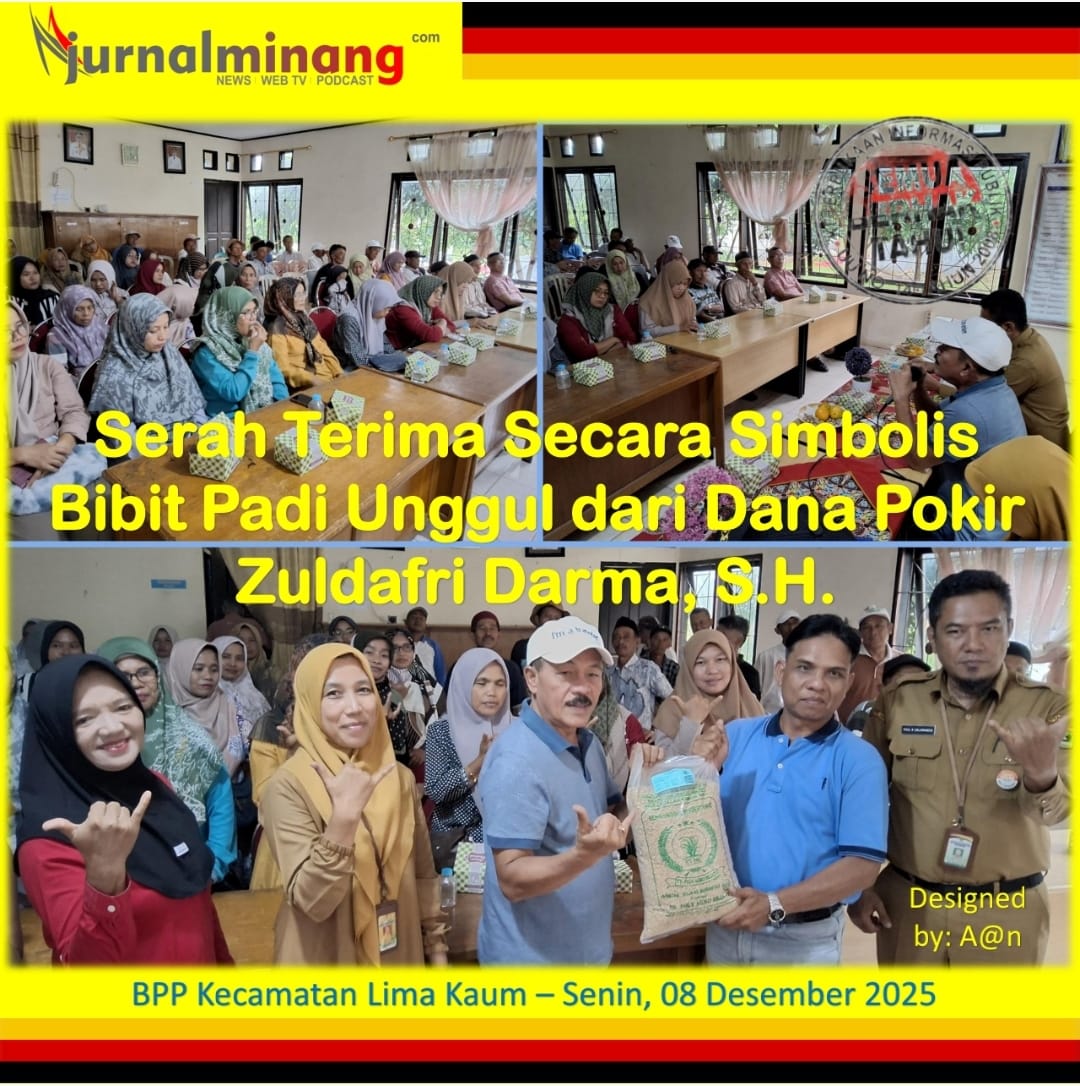 Batusangkar, Jurnal Minang. H. Zuldafri Darma, S.H., anggota DPRD Provinsi Sumatera Barat dari Fraksi Golkar melaksanakan secara simbolis serah terima bantuan bibit padi kepada kelompok tani yang ada di kecamatan Lima Kaum. Pertemuan serah terima secara simbolis tersebut dilaksanakan di ruang pertemuan kantor Balai Penyuluh Pertanian (BPP) Kecamatan Lima Kaum di Cubadak pada Senin, 8 Desember 2025 siang.